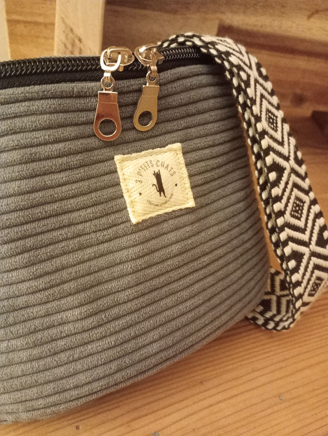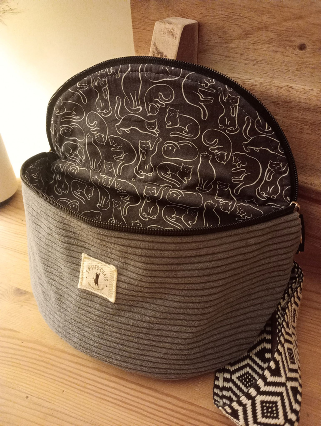 đ©¶Sac banane en velours cĂŽtelĂ© gris â imprimĂ© chat đŸ