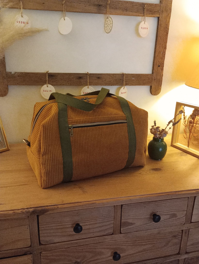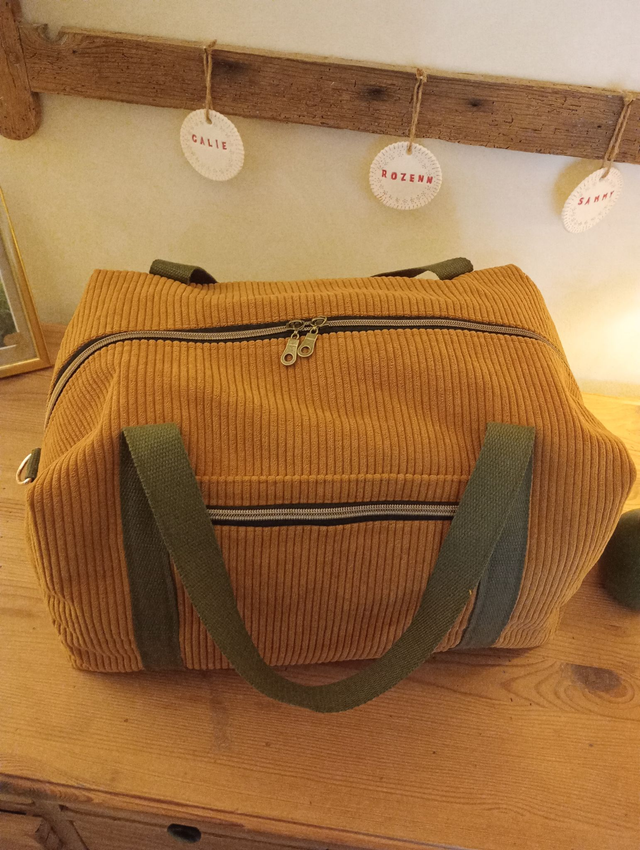 👜 Le sac de voyage "Évasion" est une création artisanale réalisée à la main dans mon atelier, avec passion et minutie. Il vous accompagnera aussi bien pour un week-end improvisé que pour vos escapades prolongées. Il peut également servir comme sac à langer ou pour emmener les affaires de bébé en voyage.